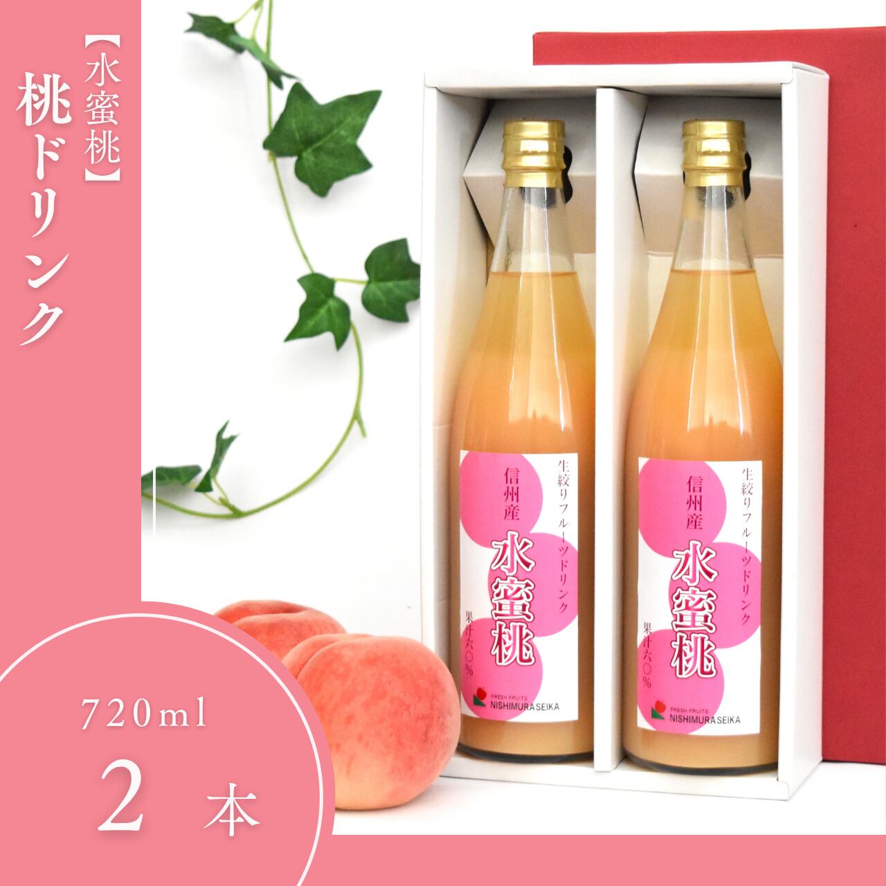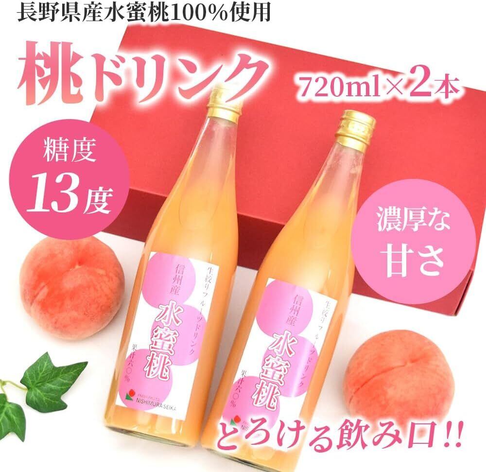 【濃厚な味わい】 長野県産 水蜜桃 桃果汁飲料 桃ドリンク 720ml×2本 ギフト プレゼント 化粧箱入 桃ジュース 西村青果