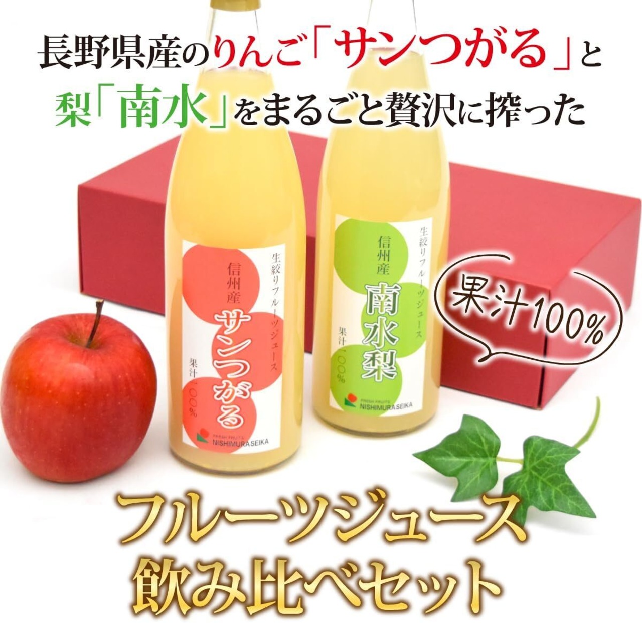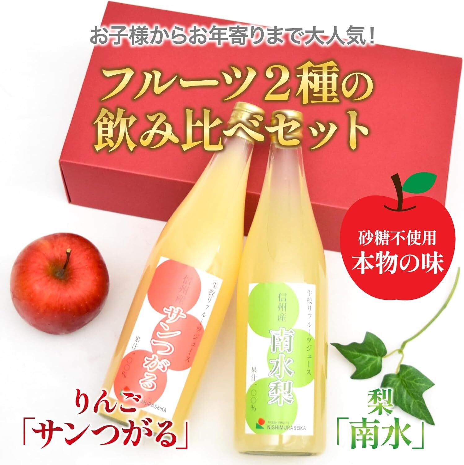 長野県産 フルーツドリンク 2種 飲み比べセット(りんご・梨) フルーツジュース 飲み比べ 化粧箱入 ギフト プレゼント西村青果