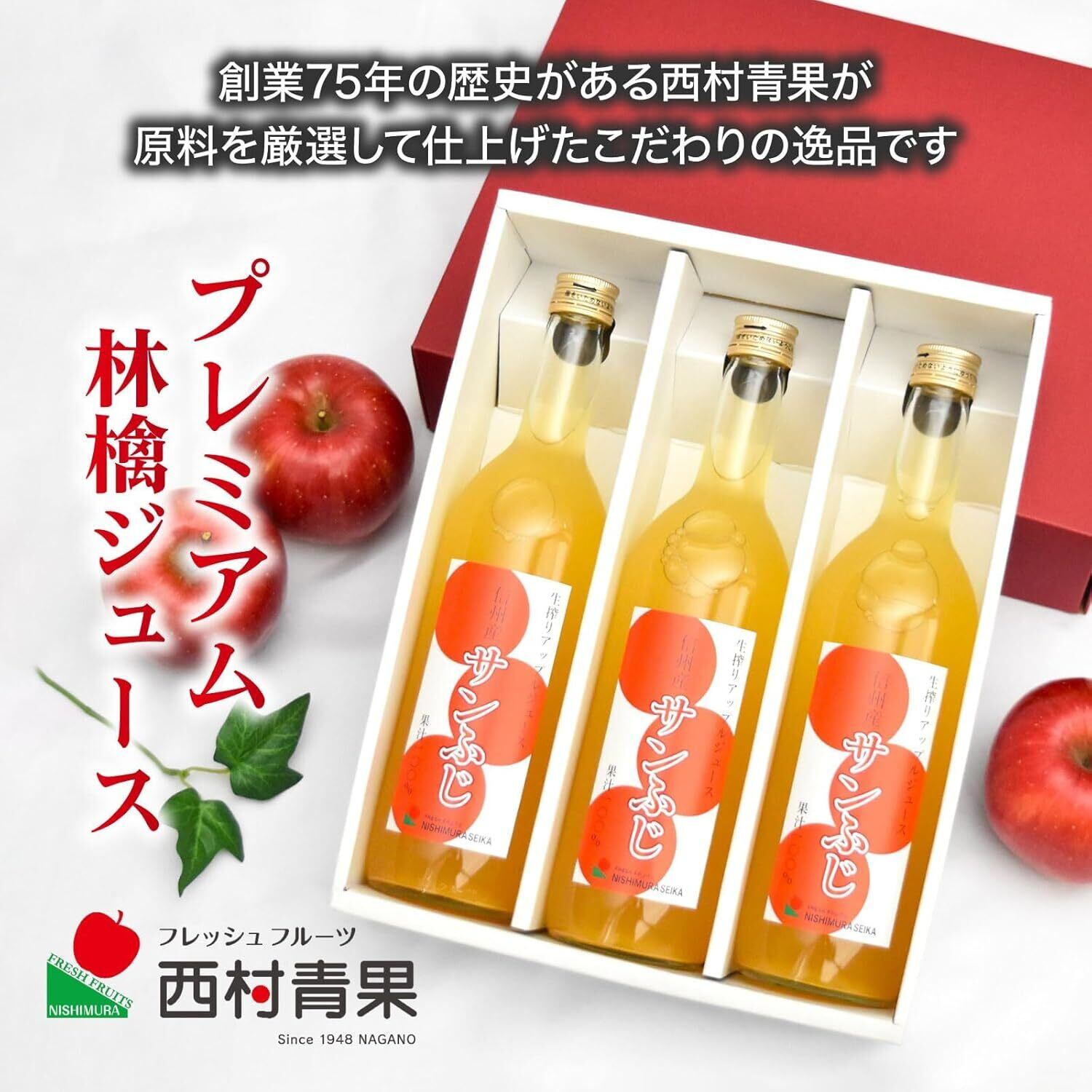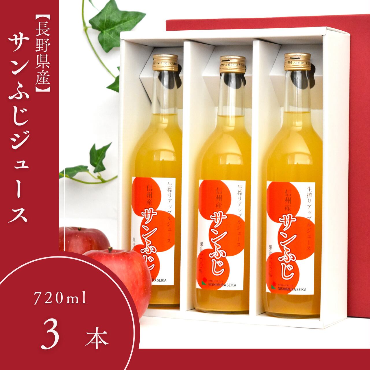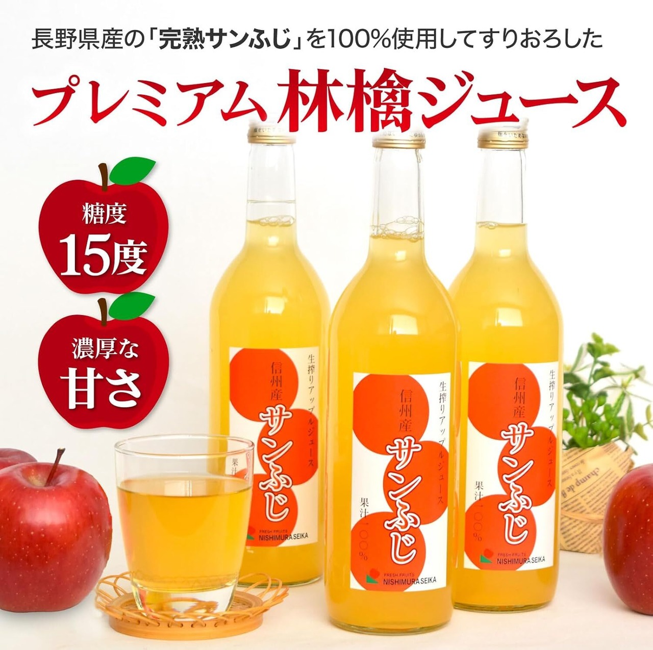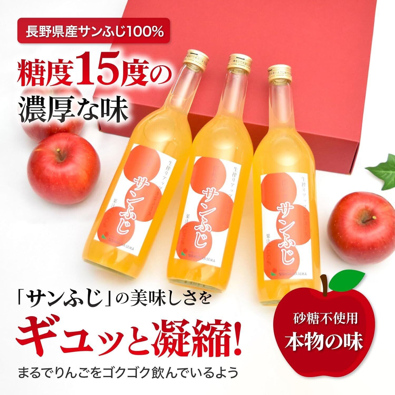 【糖度15度以上】 長野県産 生のリンゴをそのままジュースに サンふじ 本格 りんご 果汁100% ストレート リンゴジュース 720ml 3本 ギフト プレゼント 化粧箱入 西村青果