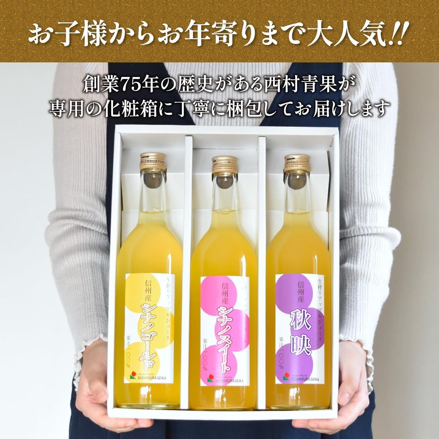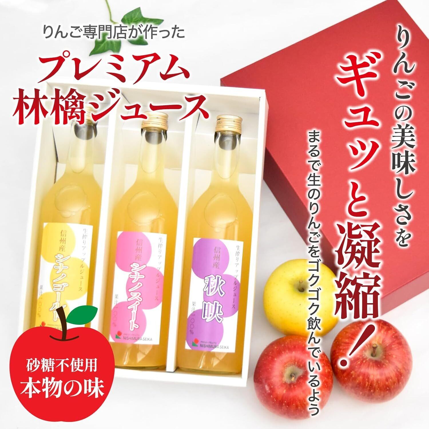 【糖度13度以上】 りんごジュース 飲み比べセット 720ml 3本 長野県産 (シナノスイート シナノゴールド 秋映) 果汁100% ストレート リンゴジュース 父の日 化粧箱入 ギフト プレゼント 西村青果