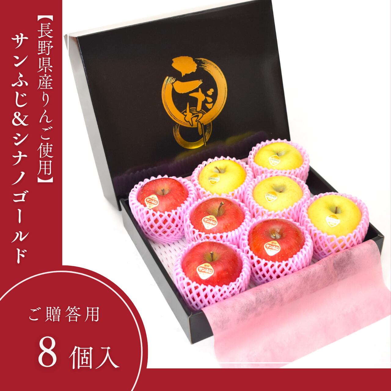 長野県産 りんご サンふじ&シナノゴールド 食べ比べ 詰め合わせ 8個入り 旬 リンゴ 林檎 長野県産 贈答用 ご家庭用 西村青果 化粧箱 (8個)