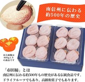 南信州の高級干し柿「市田柿」は、平均糖度50度以上の濃厚な甘さともっちりとした食感が特徴の逸品です。干すことで甘みが凝縮され、表面には自然に結晶化した白い糖がふき、上品な味わいを引き立てます。栄養価も高く、ビタミンAや食物繊維、カリウムを豊富に含み、健康的なおやつとしても人気です。そのまま食べるのはもちろん、チーズやナッツと合わせたり、サラダや煮物のアクセントとしても楽しめます。約500年の歴史を持つ伝統の味をぜひご堪能ください。600g: 18個前後